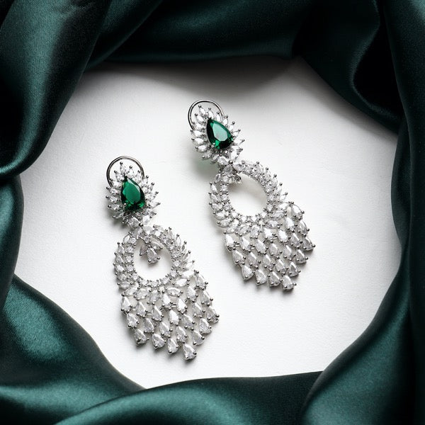 Base Material: Silver Alloy with American Diamonds and Green Stones. Coating: Rhodium Plated