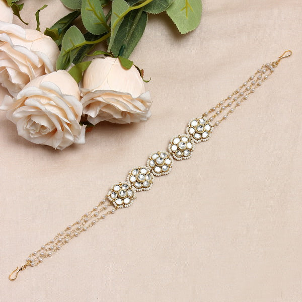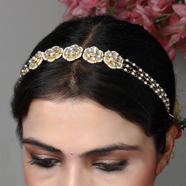 Material Used: Vellore Polki, Fresh Water Pearls. The SheeshPhool is Gold Plated with Ecoating on top.