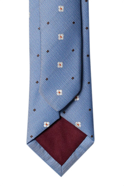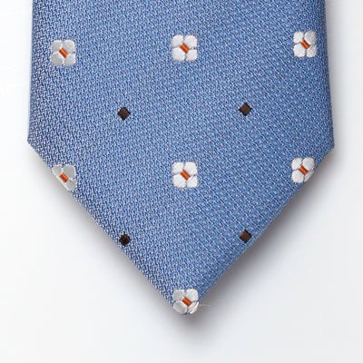 A tie to compliment your sophistication and match your glamorous style. This piece is set in a blue base with white colored modern pattern.