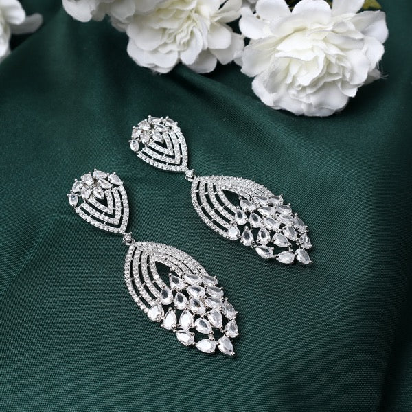 Base Material: Silver Alloy with American Diamonds. Coating: Rhodium Plated
