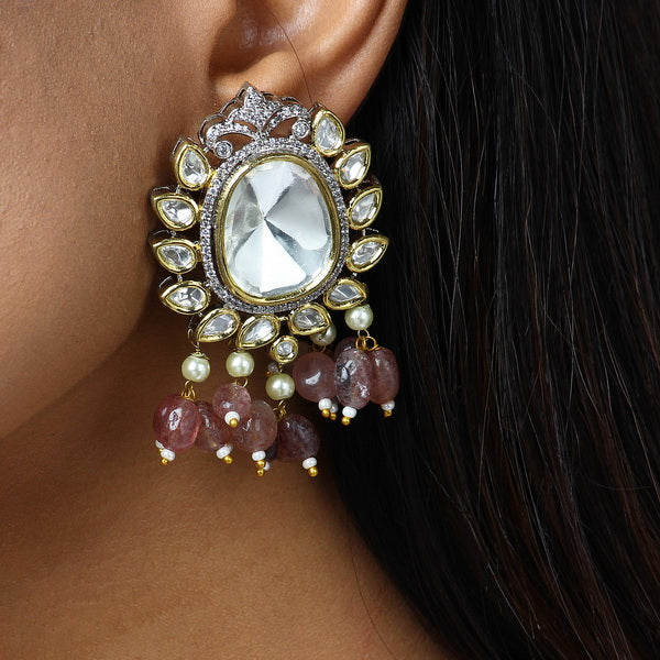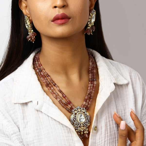 Material Used: Natural Stones, Vellore Polki, Fresh Water Pearls. The Set is Rhodium Plated.