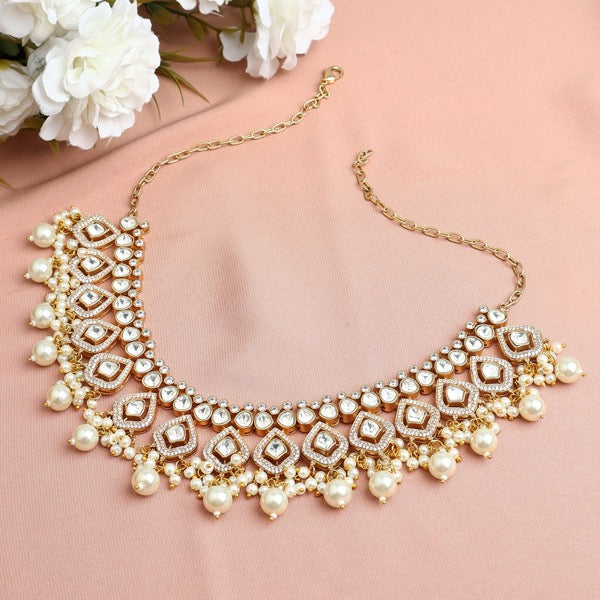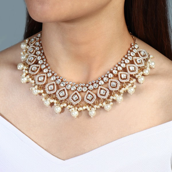 Material Used: Vellore Polki, Fresh Water Pearls. The Set is Gold Plated with Ecoating on top.