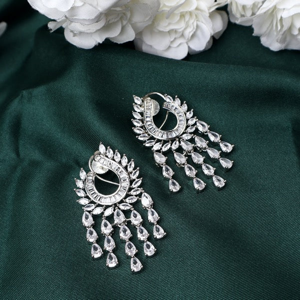 Base Material: Silver Alloy with American Diamonds. Coating: Rhodium Plated