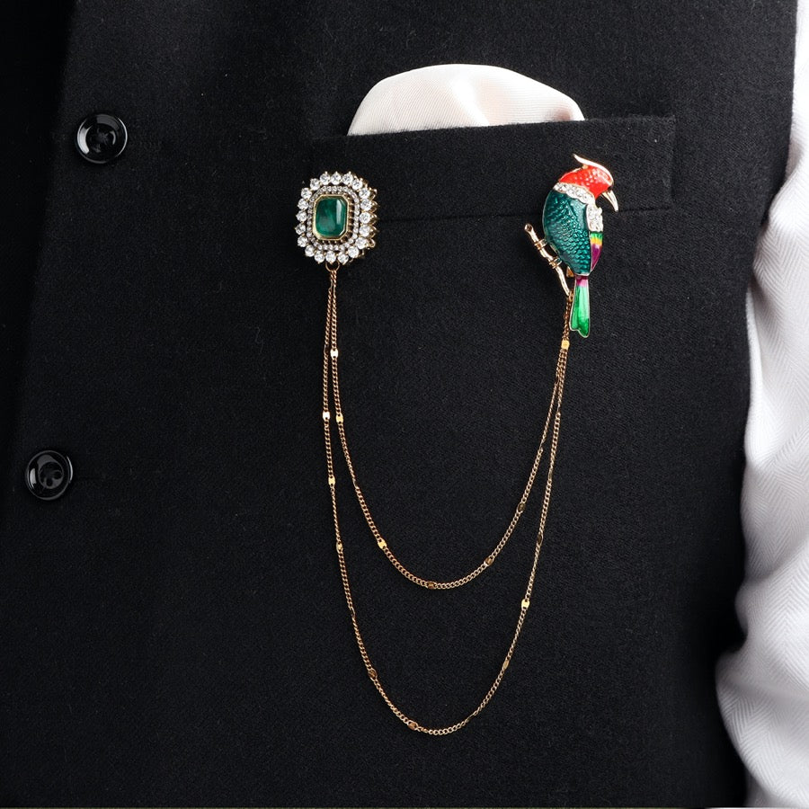 Material: Brass, MultiColour WoodPecker Bird, Emerald Onyx Stud with American Diamonds, Gold Plated Chain