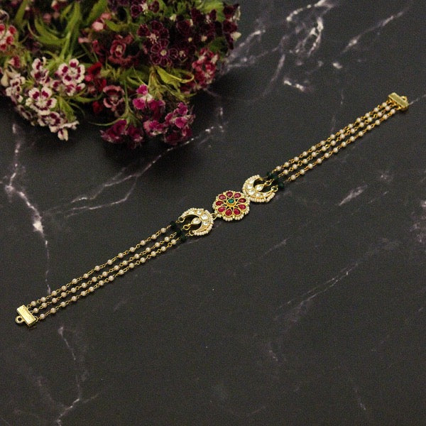 Material Used: Vellore Polki, Fresh Water Pearls, Ruby Onyx. The SheeshPhool is Gold Plated with Ecoating on top.