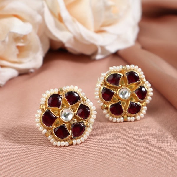Material Used: Ruby Stones, Polki. The Earring is Gold Plated with Ecoating on top.