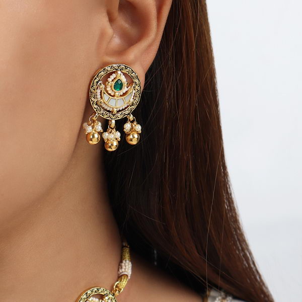 Material Used: Green Onyx, Polki. The Set is Gold Plated with Ecoating on top.